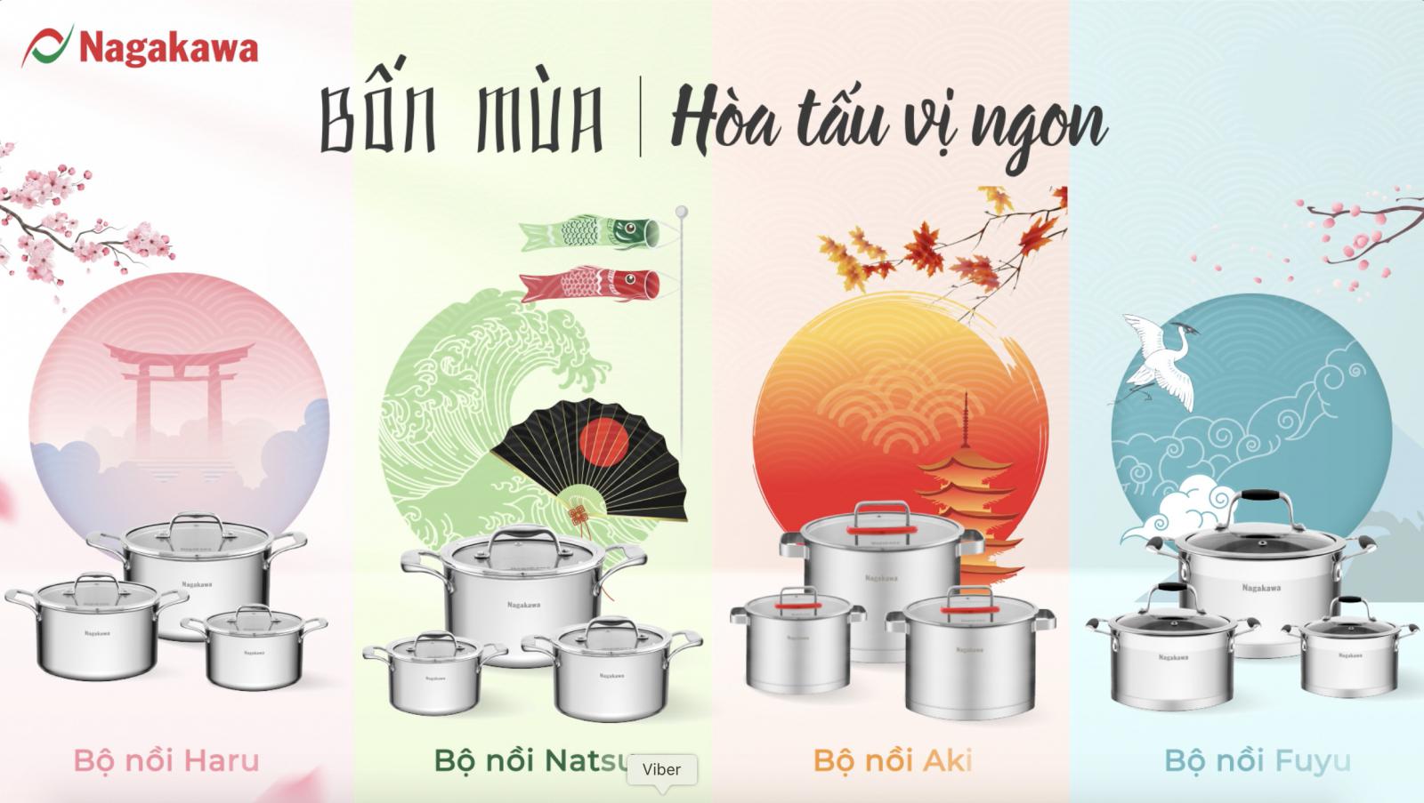 Nằm trong Bộ sưu tập Nồi – Chảo bốn mùa, Bộ nồi inox Nagakawa Aki NAG1357, với “Aki” nghĩa là mùa thu. Sự trọn vẹn cả về chất lượng và thiết kế giúp việc nấu ăn trở nên dễ dàng và nhanh chóng, giúp người nội trợ thảnh thơi tạo ra những tuyệt phẩm ẩm thực. Bộ nồi mùa thu như một bản nhạc với những nốt cảm xúc nhẹ nhàng, thư thái trong bản hòa tấu vị ngon bốn mùa của đầu bếp.