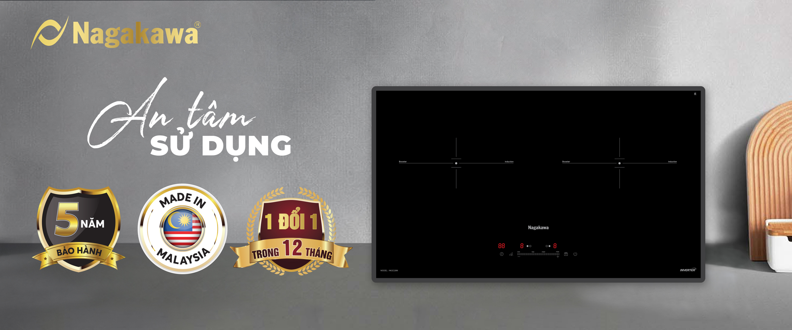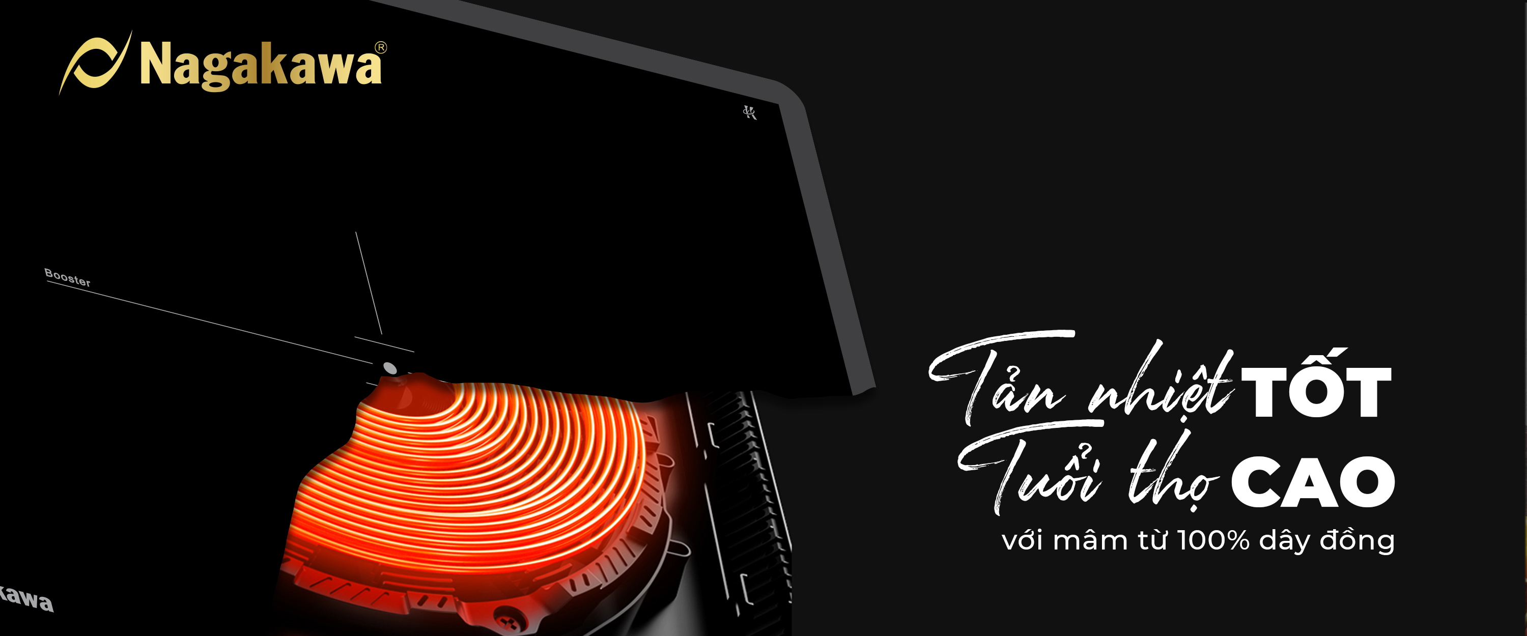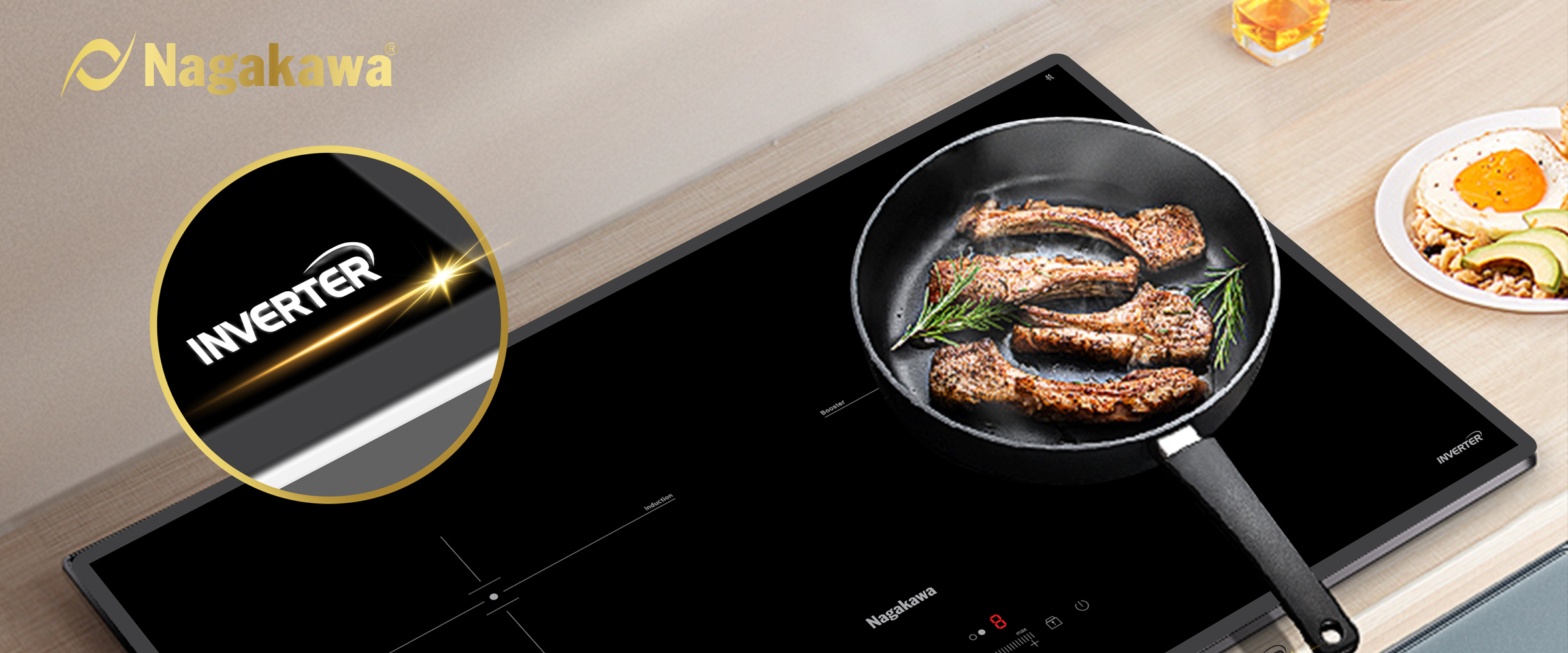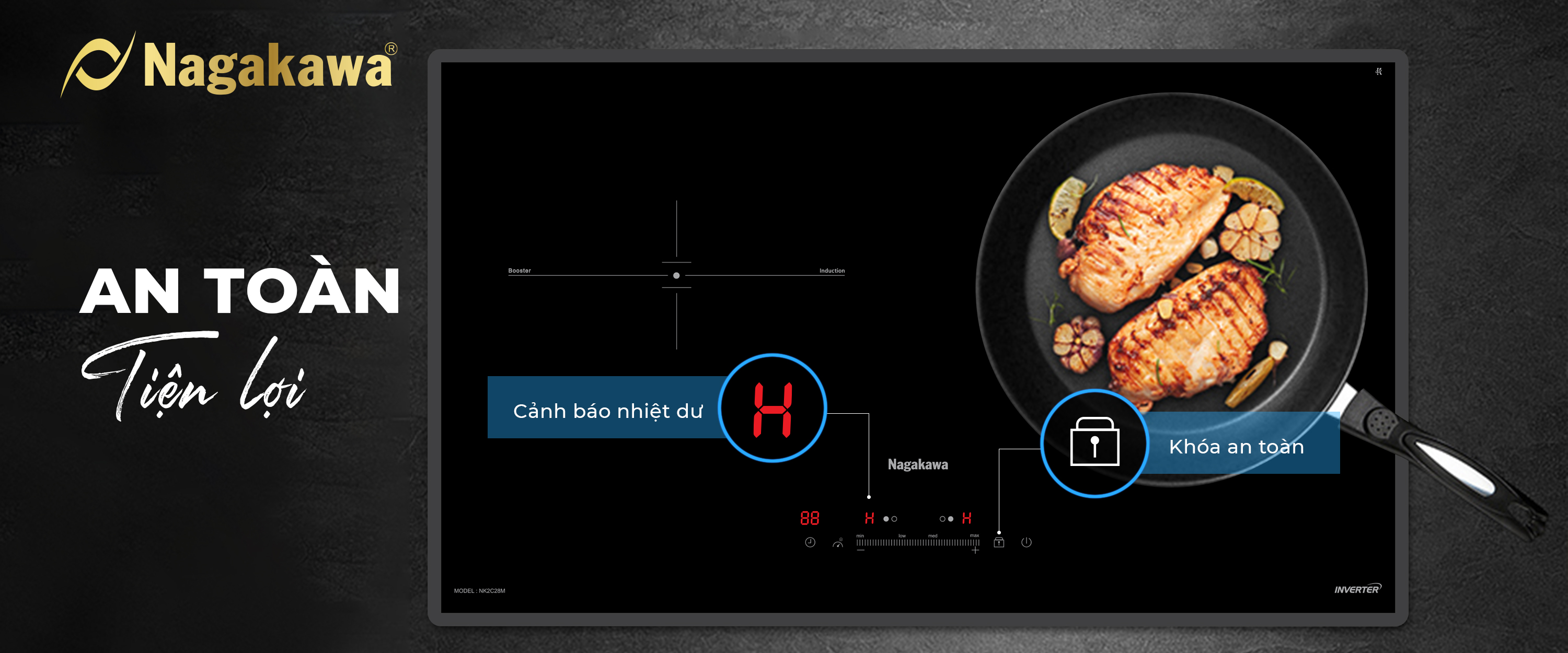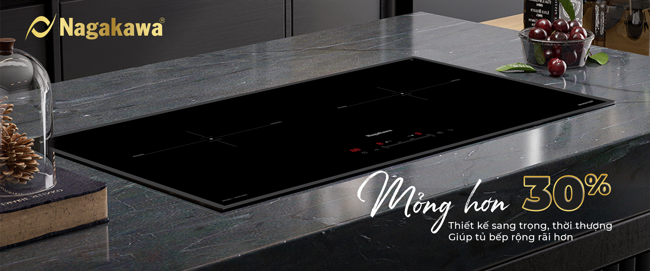 Pioneering the 4.0 design style, UltraSlim Nagakawa NK2C28M has a thickness of only 58mm - 30% thinner than conventional induction cooktop products. Now, the kitchen not only "liberated" the maximum area but also became more luxurious, more modern, inspiration for thousands of delicious dishes.