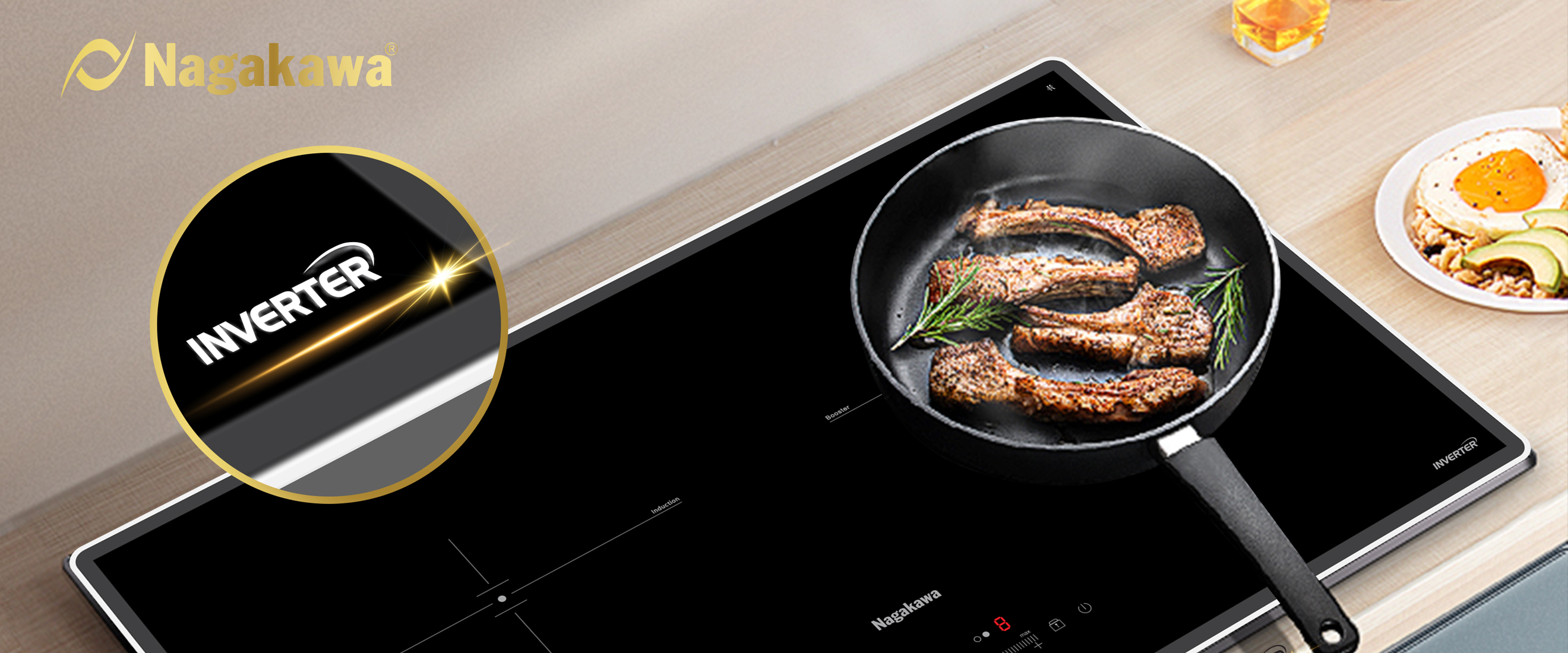 The Nagakawa UltraSlim NK2C28M double electric stove is equipped with Inverter technology to control the capacity of the device, in order to avoid wasting energy during use. The basic principle of inverter technology is based on controlling each frequency fluctuation (Hz) of the circuit board inside the kitchen, helping to ensure the stability of the kitchen, maximum energy savings and increased smart features for the kitchen.