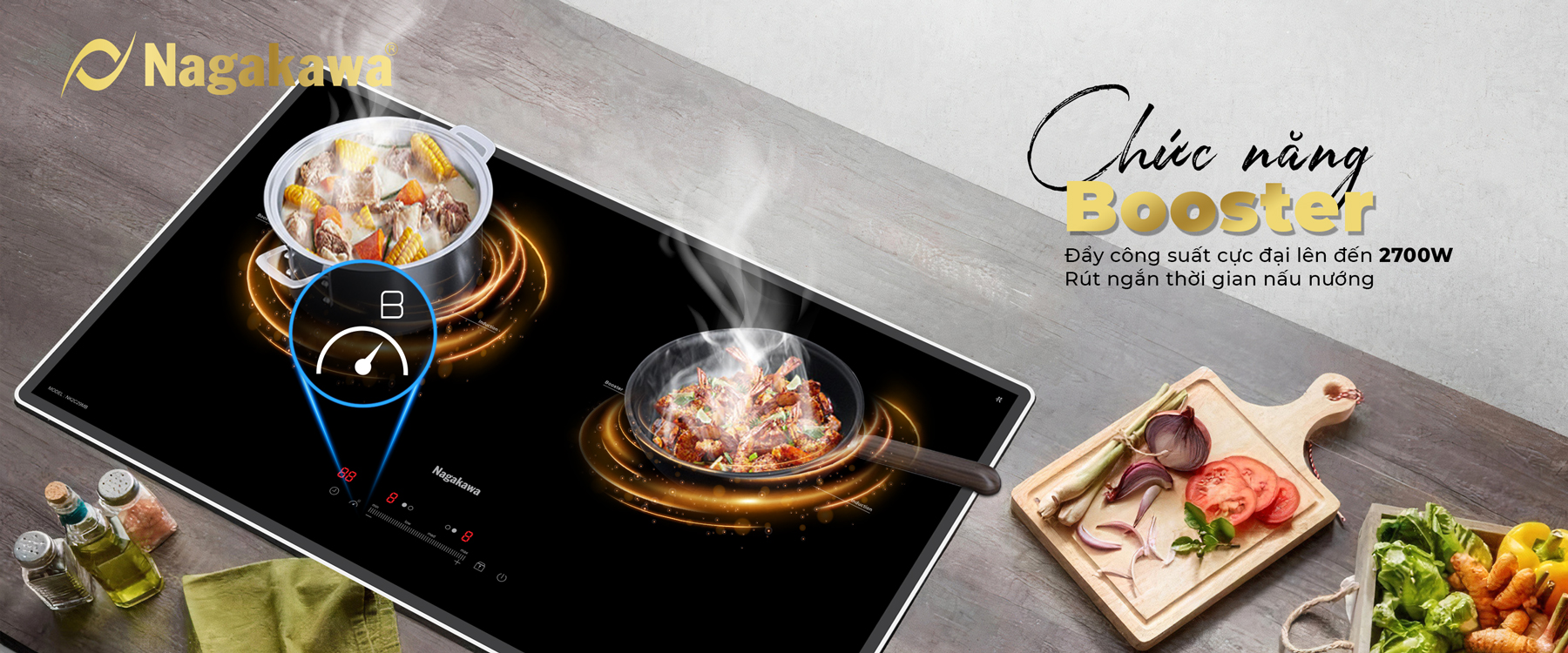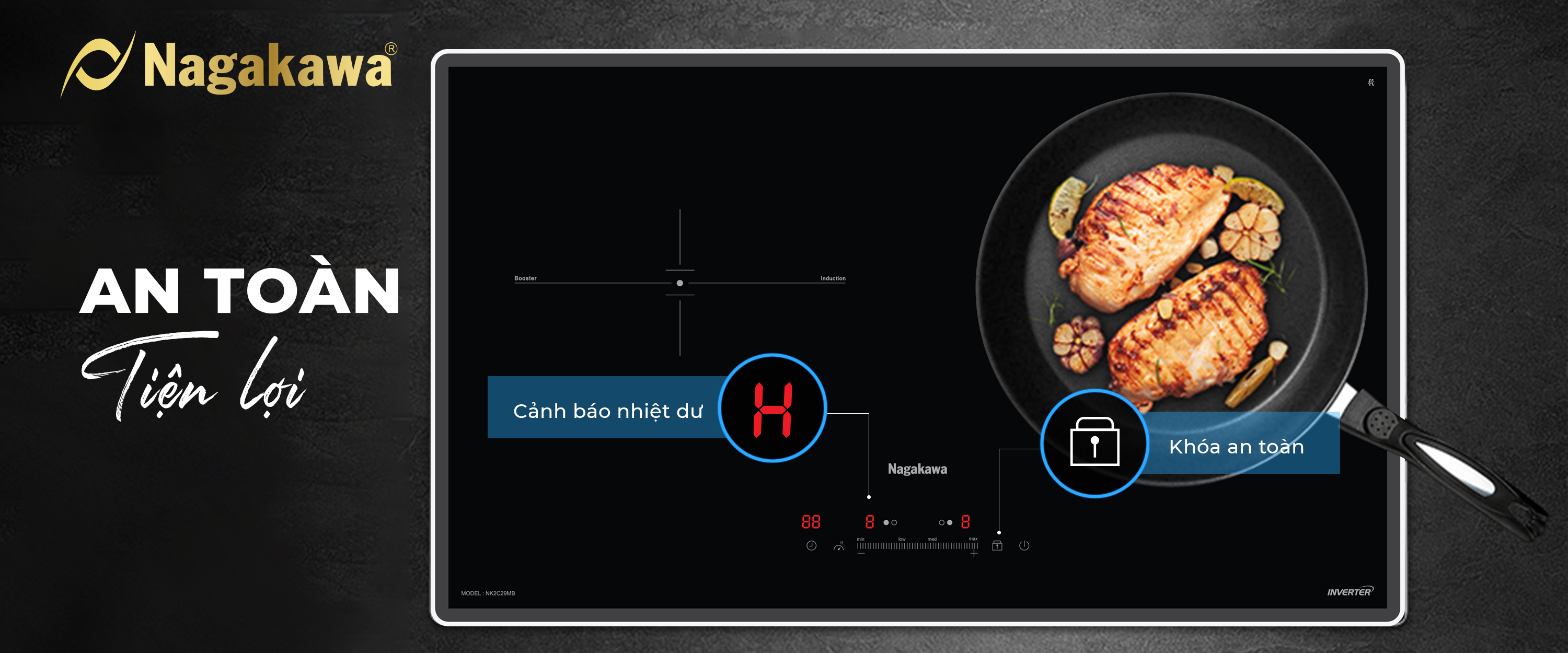 Pioneering the 4.0 design style, Nagakawa UltraSlim NK2C29MB double electric stove is only 58mm thick - 30% thinner than conventional induction cooktop products. Now, the kitchen not only "liberated" the maximum area but also became more luxurious, more modern, inspiration for thousands of delicious dishes.