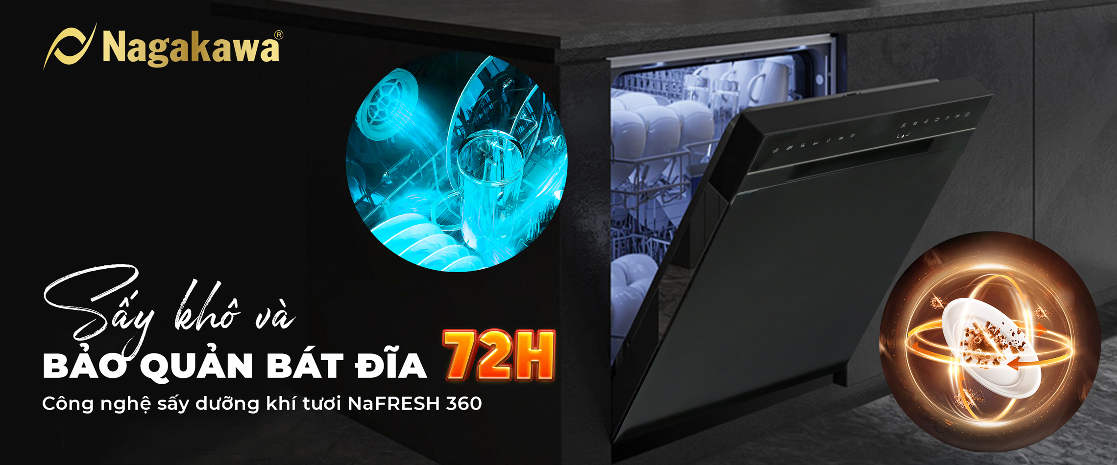 With our product Dishwasher Nagakawa NK13D02M, your dinnerware will not only be clean but also safely dried with the power of NaFRESH 360 technology.