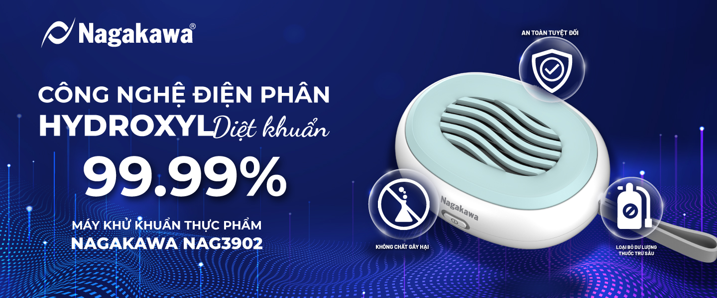 Therefore, to ensure the health and safety of the whole family, proactively improving food quality is extremely important and must be done regularly. Nagakawa NAG3902 disinfection machine with modern Hydroxyl electrolysis technology, possessing outstanding features, has officially been present in Vietnam