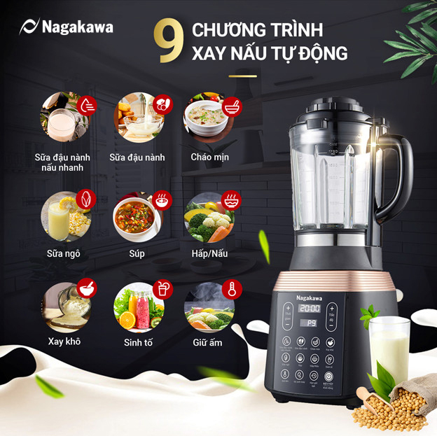 Nut milk is a nutritious beverage that is good for health, especially in reducing cholesterol and the risk of cancer. However, nut milk is only truly beneficial when we can control the quality of the ingredients, composition, prevent oxidation, and avoid synthetic flavors. Therefore, the introduction of the versatile Nagakawa NAG0815 nut milk maker helps you prepare nut milk, porridge, soup, and smoothies conveniently, easily, and saves time.