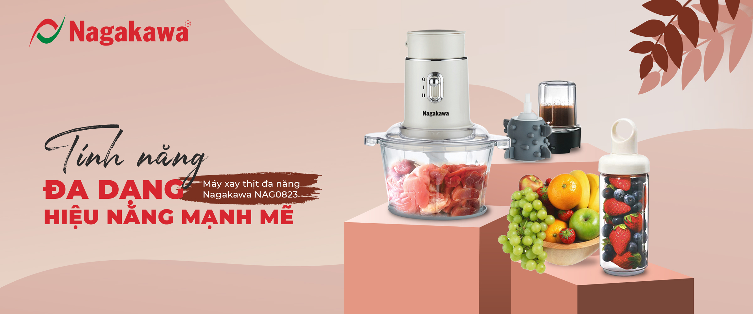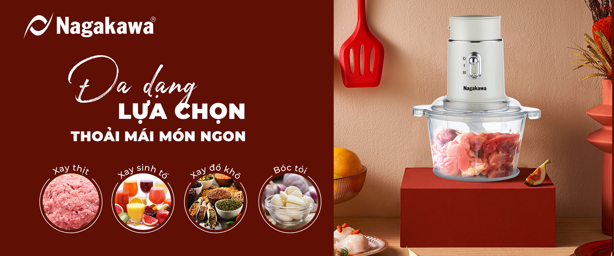 To create delicious meals, cooking involves many meticulous tasks, such as grinding meat, making smoothies, grinding dry ingredients, or peeling garlic. Understanding the hard work of homemakers, Nagakawa introduced the multi-functional meat grinder Nagakawa NAG0823. This product integrates multiple functions to save cooking time and optimize kitchen appliances.
